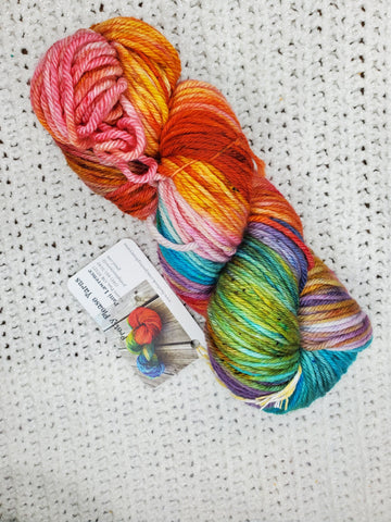 Fiber: I have used a single hank of small batch, hand dyed merino wool from a home business dyer located in Oregon USA. It is 100% merino wool and buttery soft. I paired this with a white 100% merino wool.
